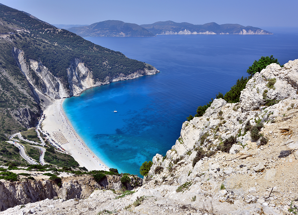 The natural beauty of Myrtos is the trademark of Kefalonia and one of the most photographed places in Greece.